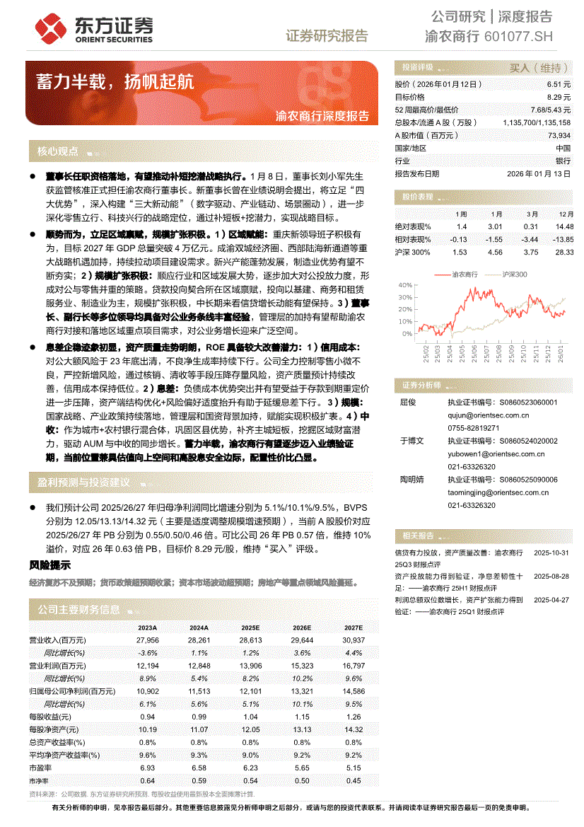 渝农商行:东方证券-渝农商行-601077-深度报告:蓄力半载,扬帆起航-260113