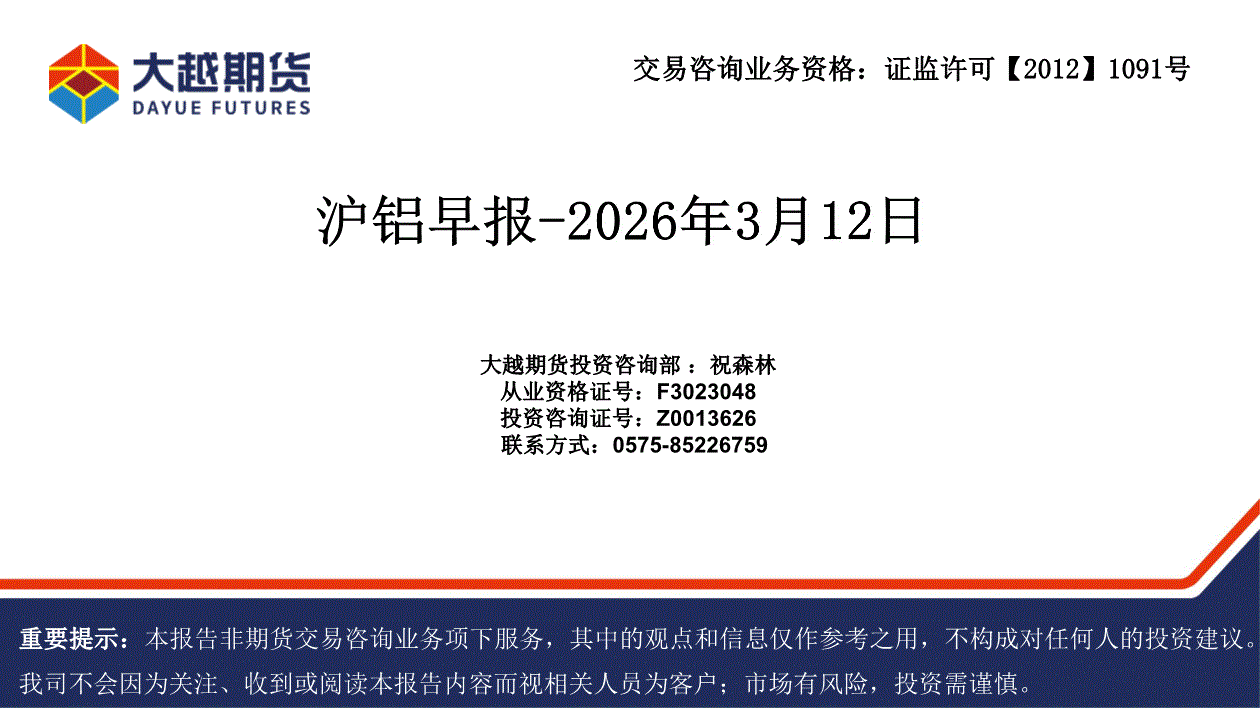 大越期货-沪铝早报-260312