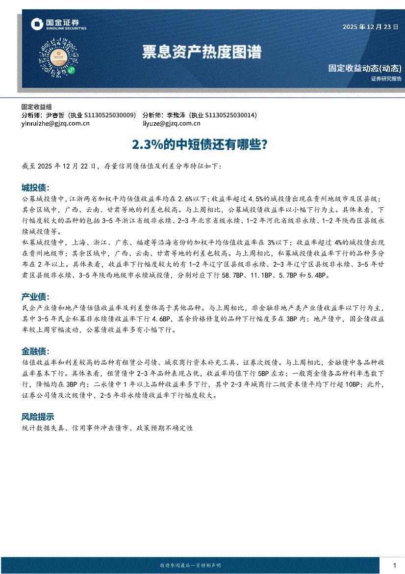 国金证券-票息资产热度图谱:2.3%的中短债还有哪些?-251223