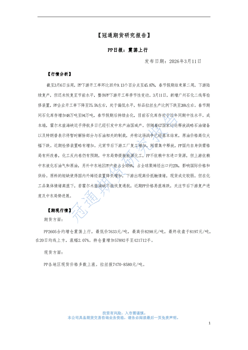 冠通期货-PP日报:高开后震荡运行-260312