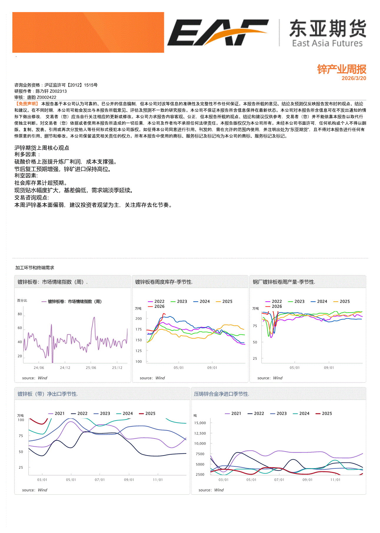 上海东亚期货-锌产业周报-260320