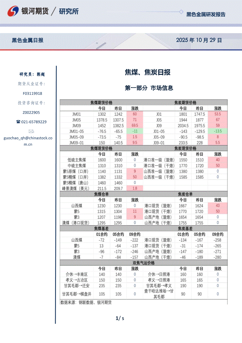 银河期货-双焦:现货成交良好,底部有支撑-251017