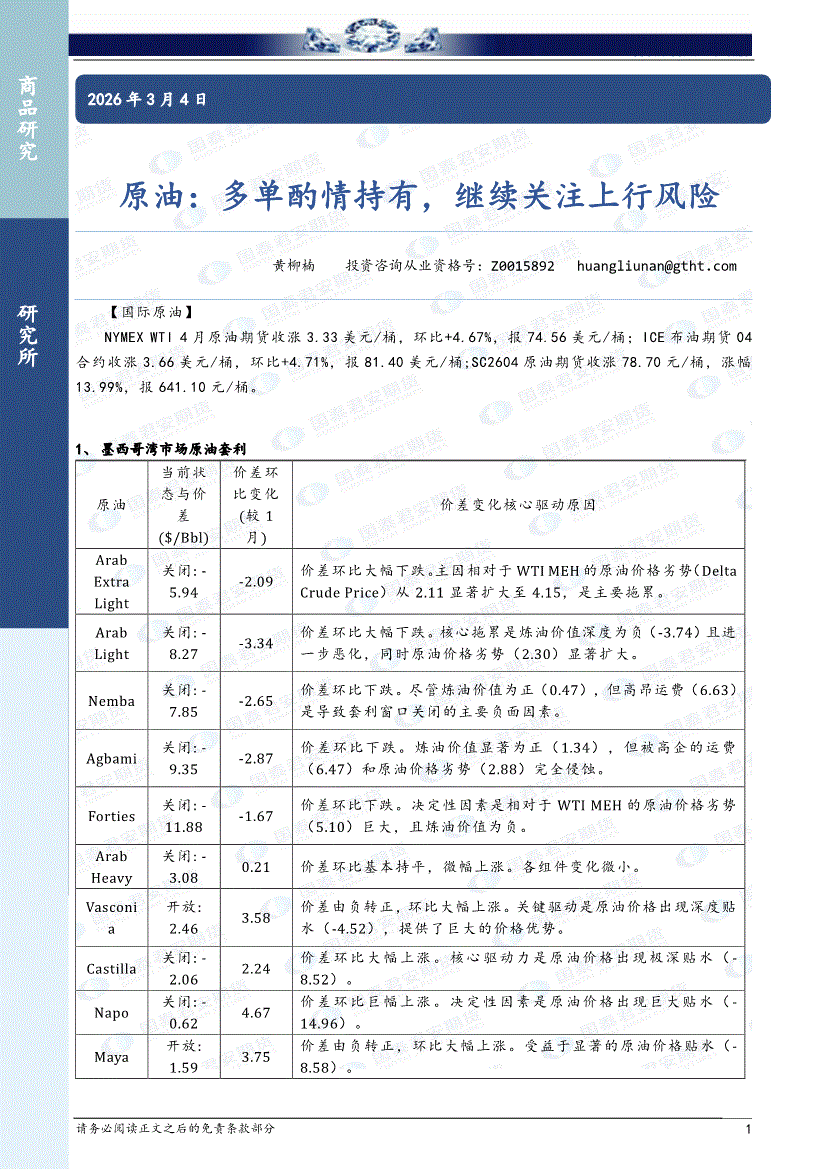 国泰君安期货-原油:多单酌情持有,继续关注上行风险-260305