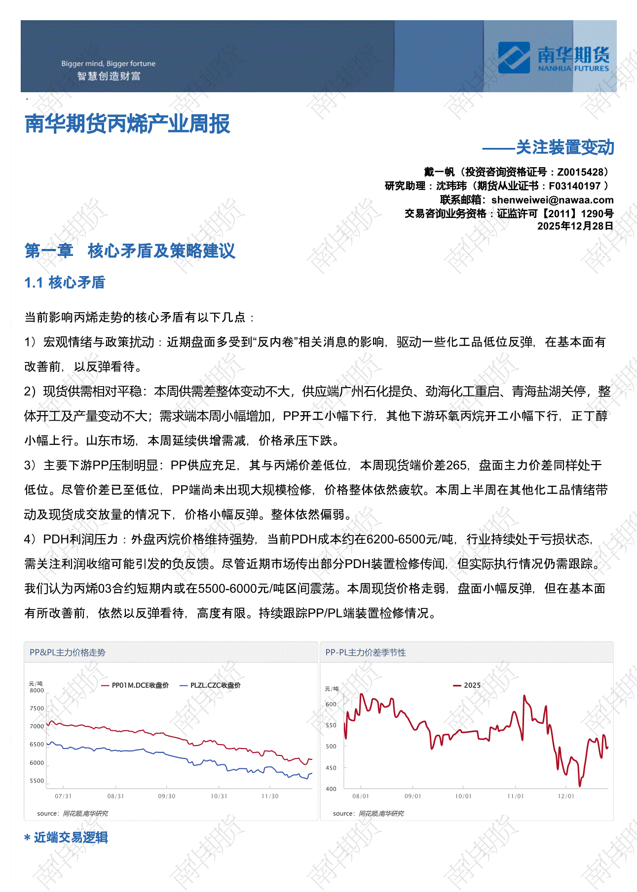 南华期货-丙烯产业周报:关注装置变动-251228