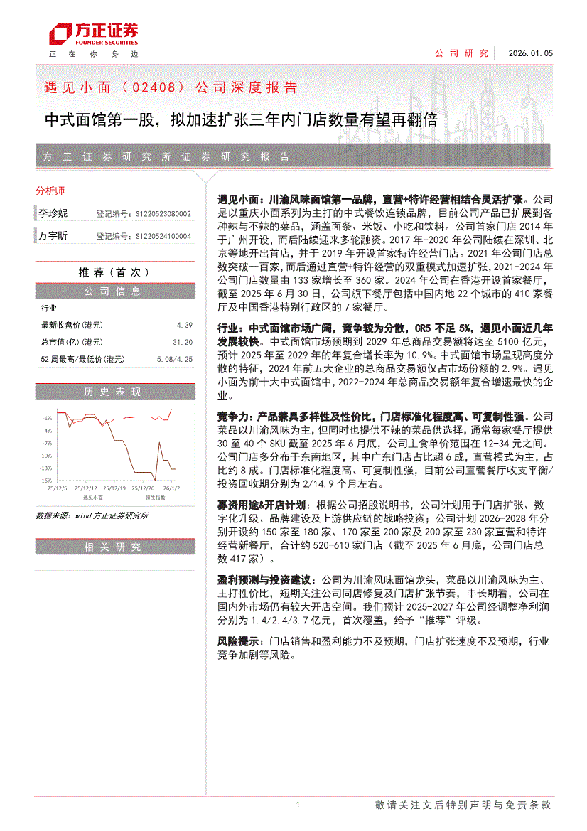 遇见小面:方正证券-遇见小面-2408.HK-公司深度报告:中式面馆第一股,拟加速扩张三年内门店数量有望再翻倍-260105