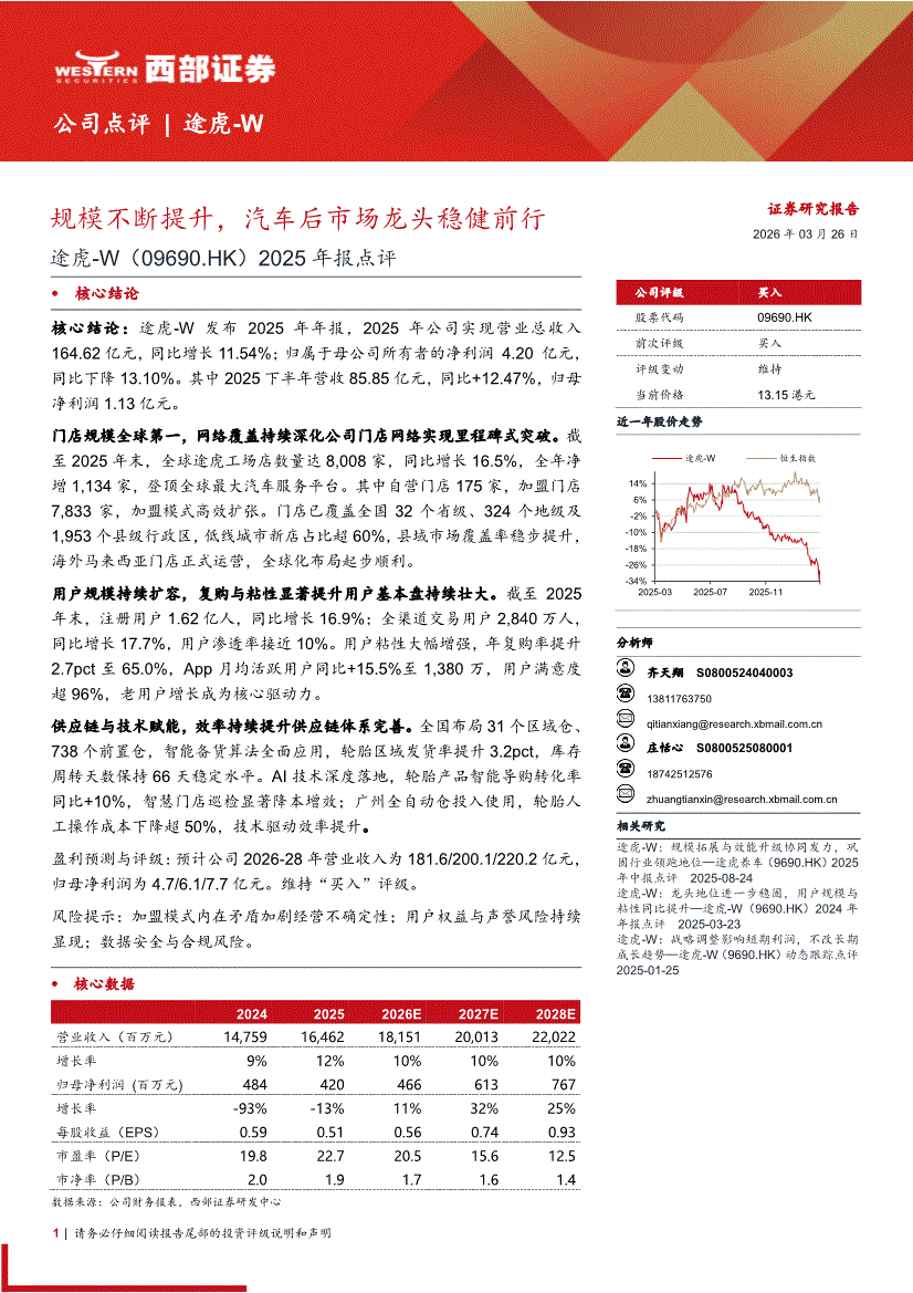 途虎~W:西部证券-途虎~W-9690.HK-2025年报点评:规模不断提升,汽车后市场龙头稳健前行-260326