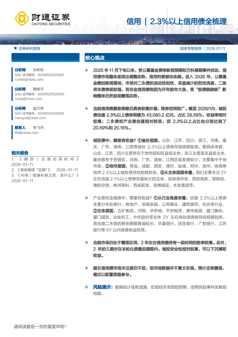 财通证券-信用| 2.3%以上信用债全梳理-260111