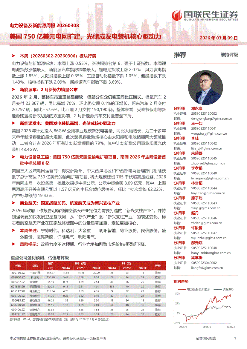 电力设备及新能源行业:国联民生证券-电力设备及新能源行业周报:美国750亿美元电网扩建,光储成发电装机核心驱动力-260309
