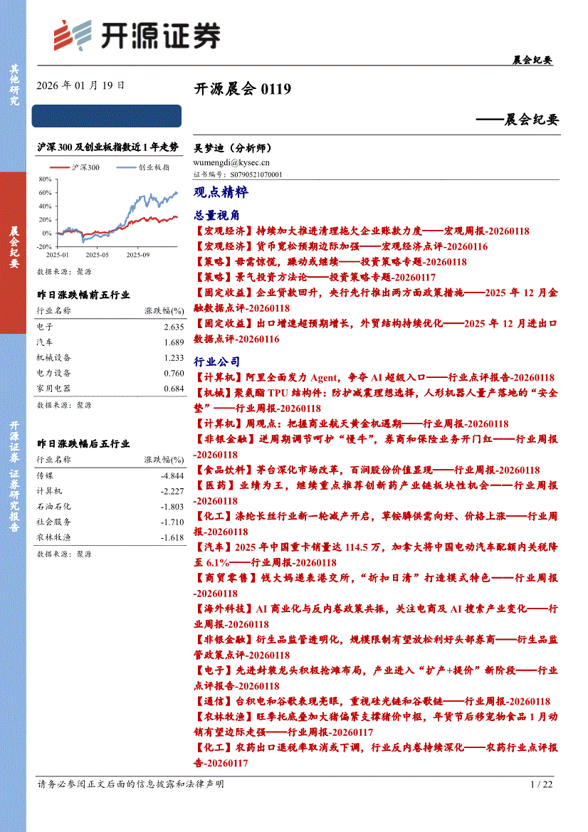 慧博智能投研-机构周策略:机构观点及行业配置-260125