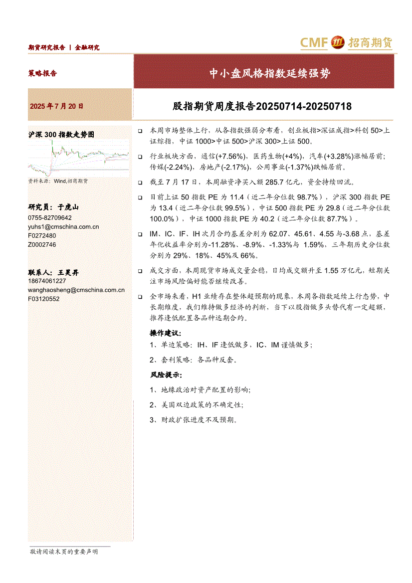 招商期货-股指期货周度报告:中小盘风格指数延续强势-250720
