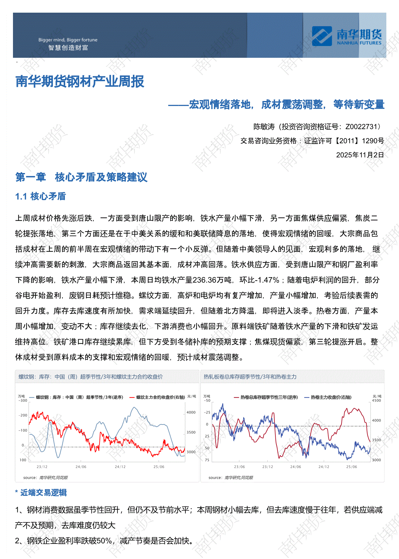 南华期货-钢材产业周报:宏观情绪落地,成材震荡调整,等待新变量-251102
