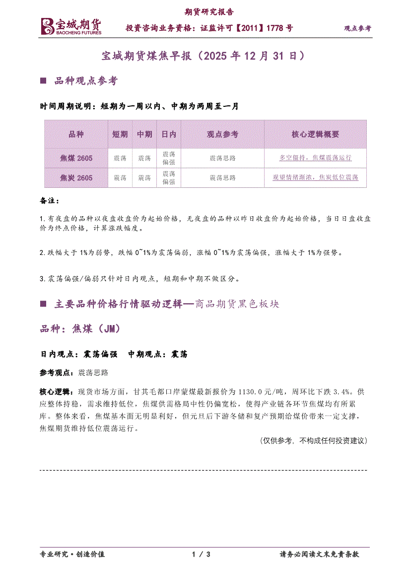 宝城期货-焦煤焦炭周报:多空僵持,煤焦低位运行-251226