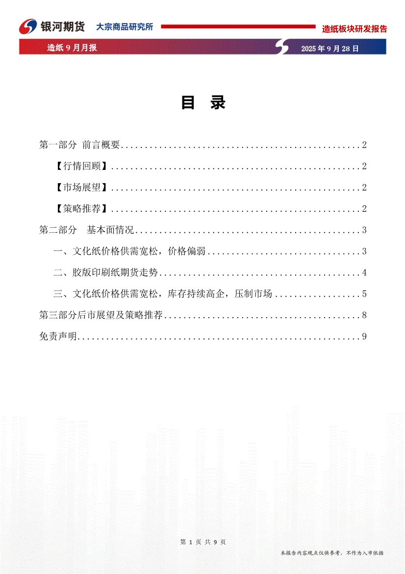 银河期货-造纸9月月报:高库存,弱需求,低利润,纸价稳中趋弱-250928
