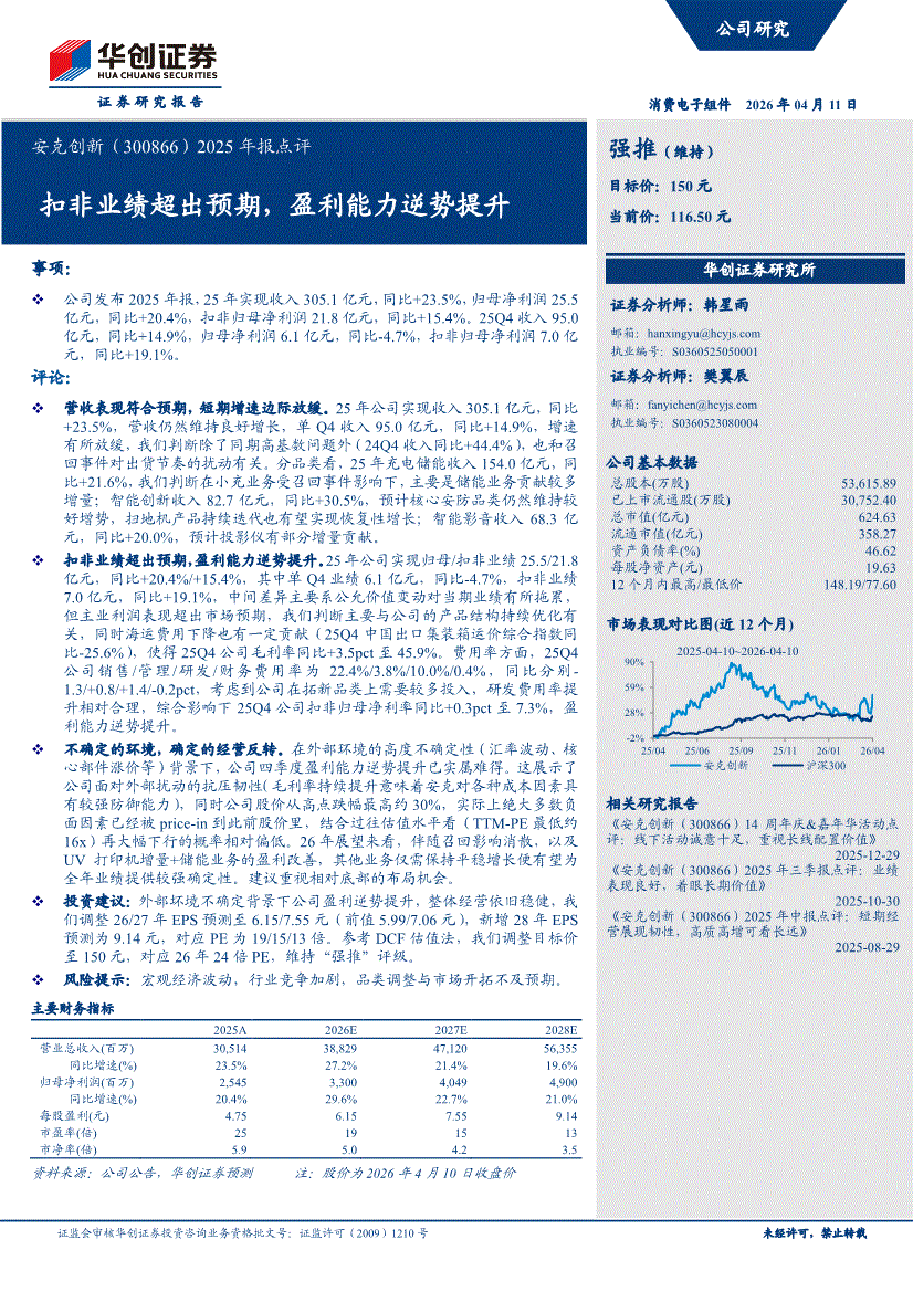 安克创新:华创证券-安克创新-300866-2025年报点评:扣非业绩超出预期,盈利能力逆势提升-260411
