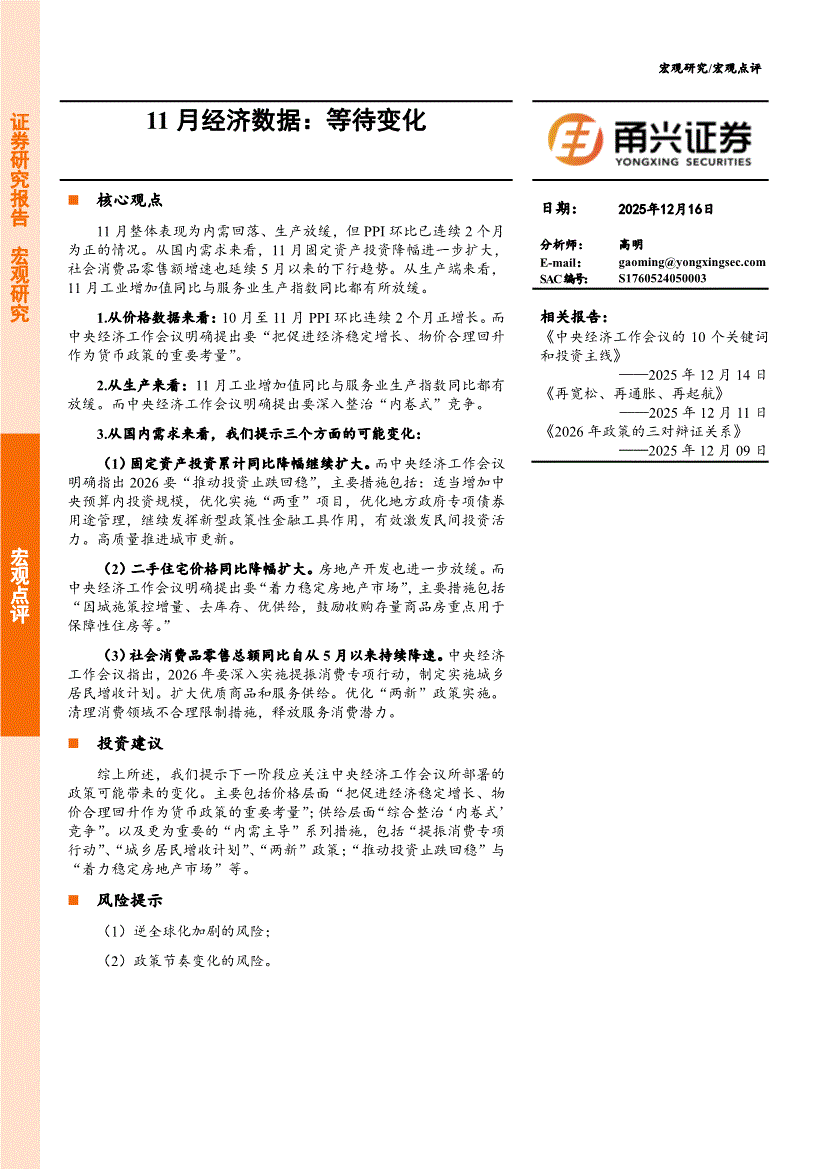 甬兴证券-11月价格数据分析:重视PPI收窄降幅的进度和结构变化-251211