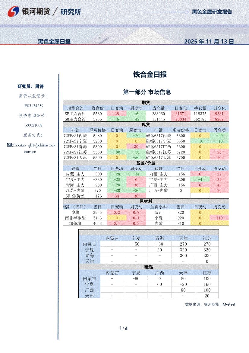 银河期货-铁合金日报-251113