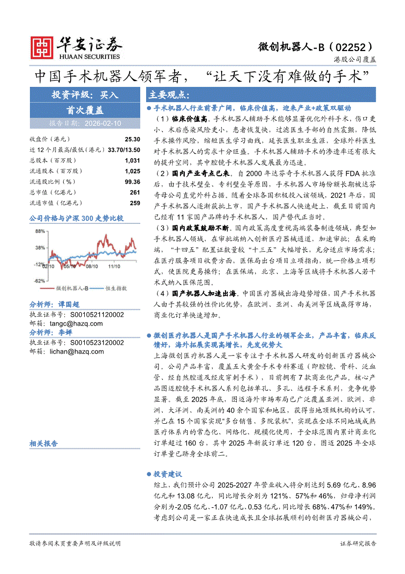 微创机器人~B:华安证券-微创机器人~B-2252.HK-中国手术机器人领军者,“让天下没有难做的手术”-260210