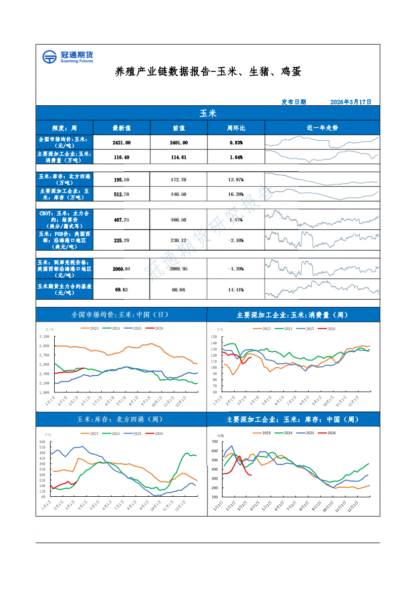 冠通期货-养殖产业链数据报告~玉米、生猪、鸡蛋-260317