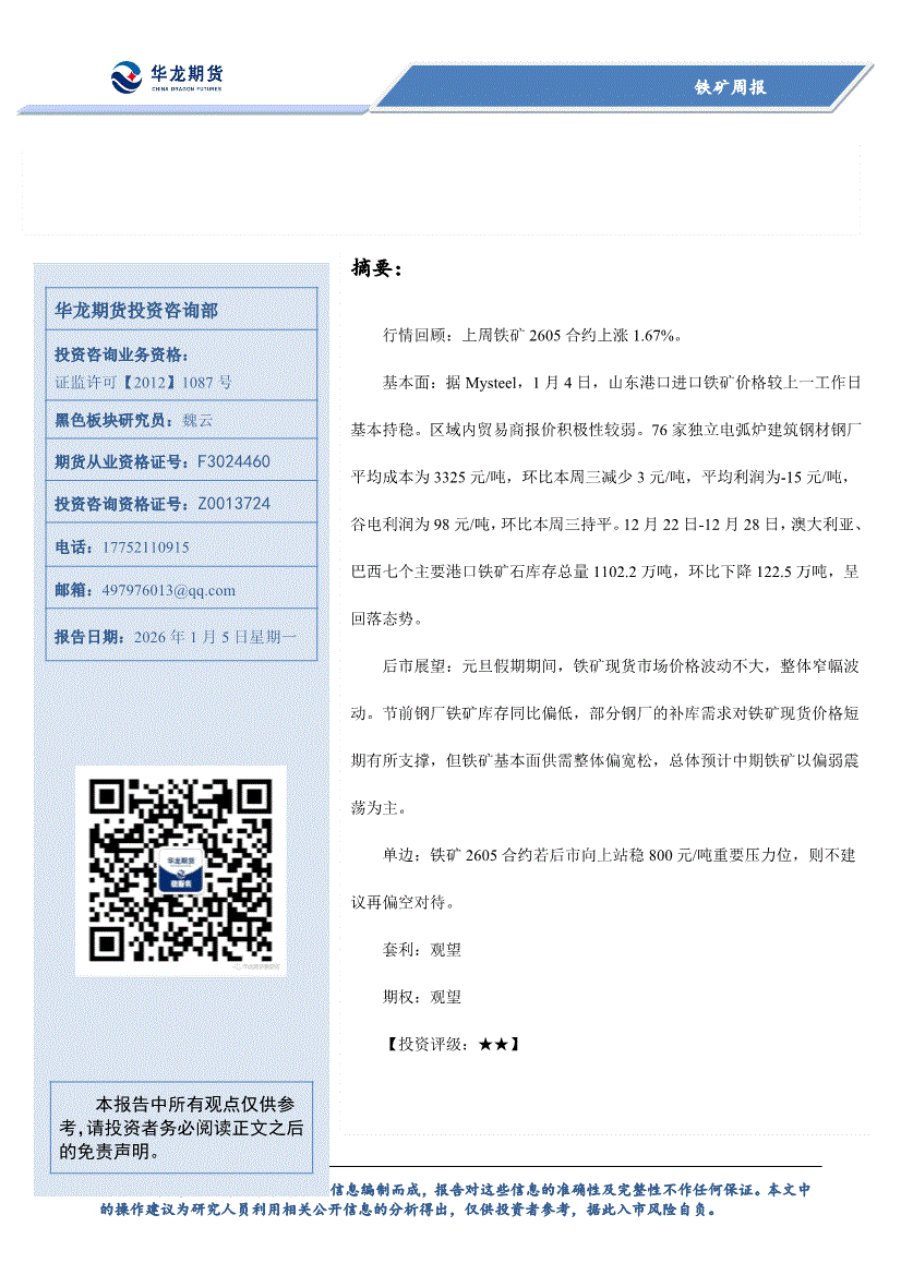 华龙期货-铁矿周报-260105
