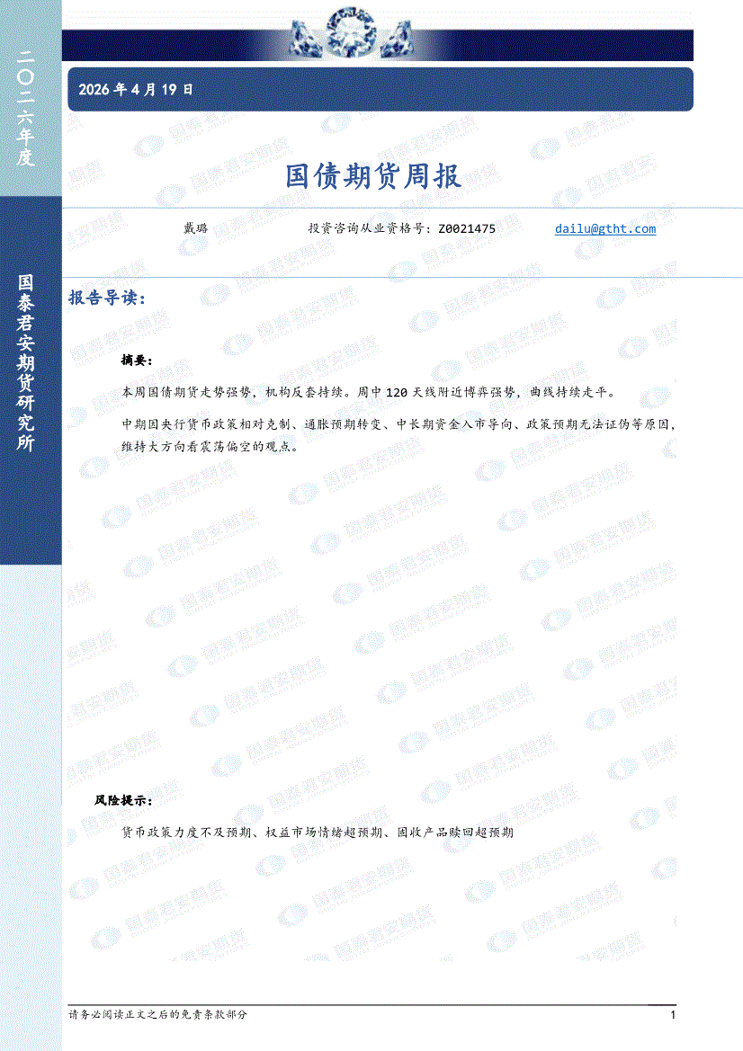 国泰君安期货-国债期货周报-260419