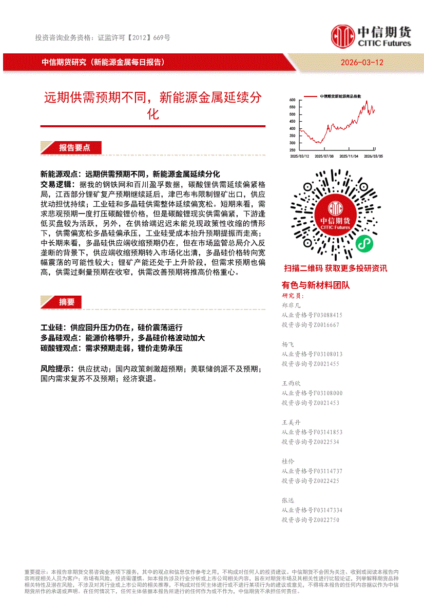 中信期货-新能源金属每日报告:远期供需预期不同,新能源金属延续分化-260312