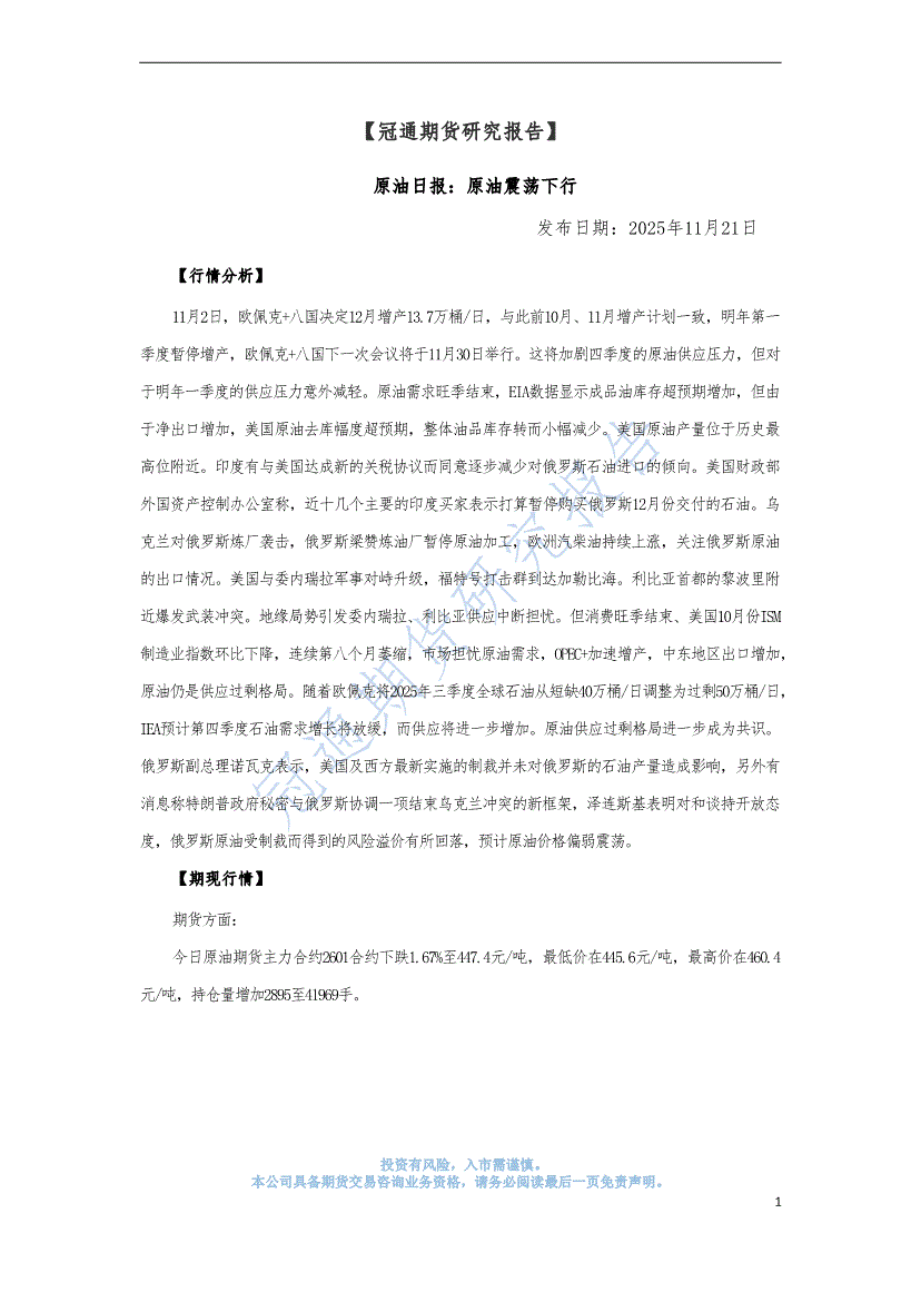 冠通期货-原油日报:原油低开后震荡运行-251120