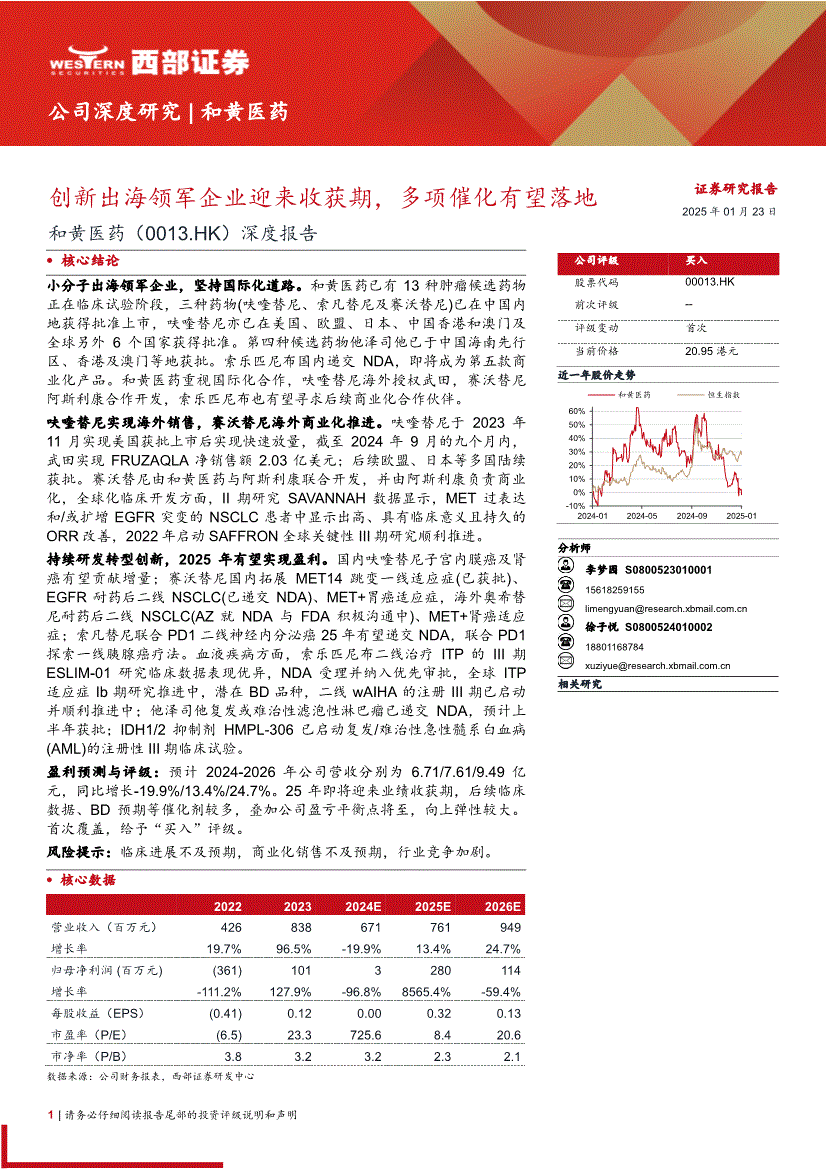 和黄医药:西部证券-和黄医药-0013.HK-深度报告:创新出海领军企业迎来收获期,多项催化有望落地-250123
