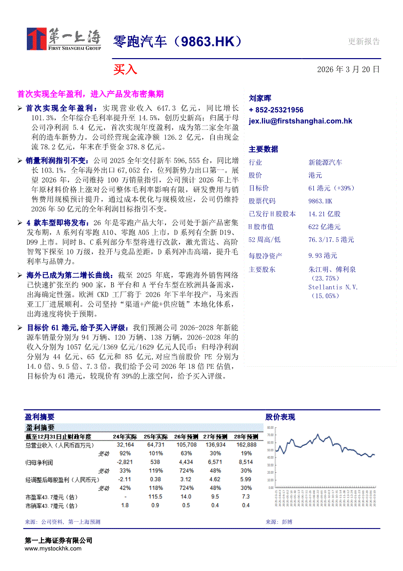 零跑汽车:第一上海-零跑汽车-9863.HK-首次实现全年盈利,进入产品发布密集期-260320