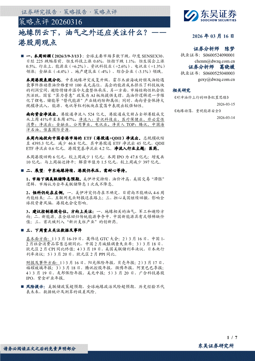 东吴证券-策略点评:地缘阴云下,油气之外还应关注什么?——港股周观点-260316