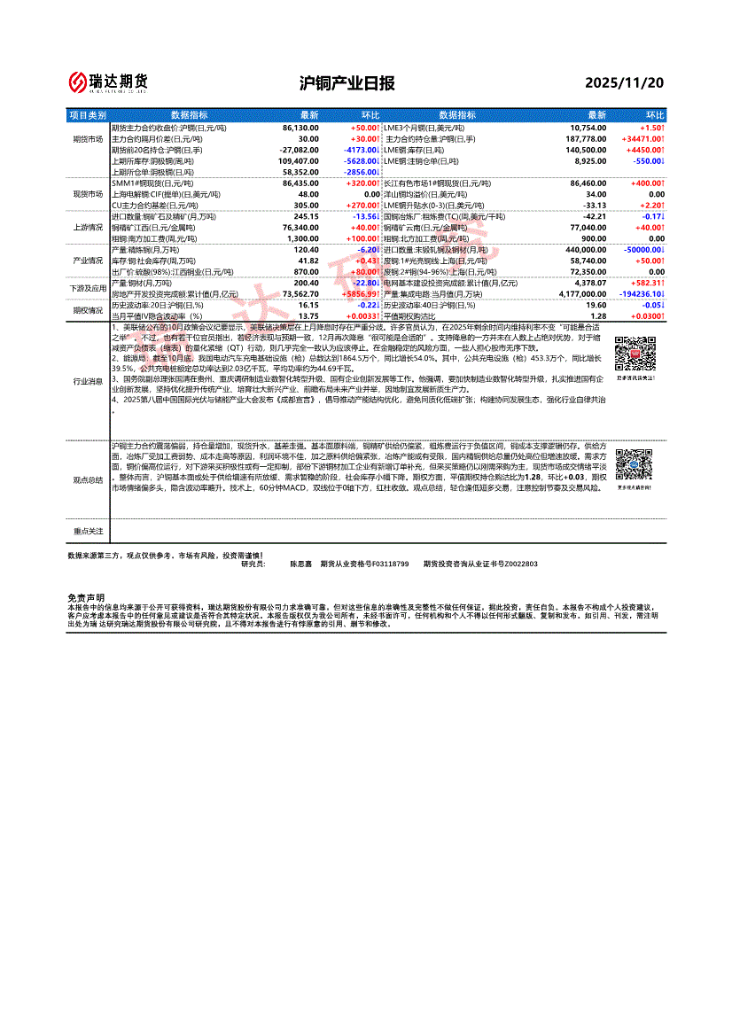 瑞达期货-沪铜产业日报-251120