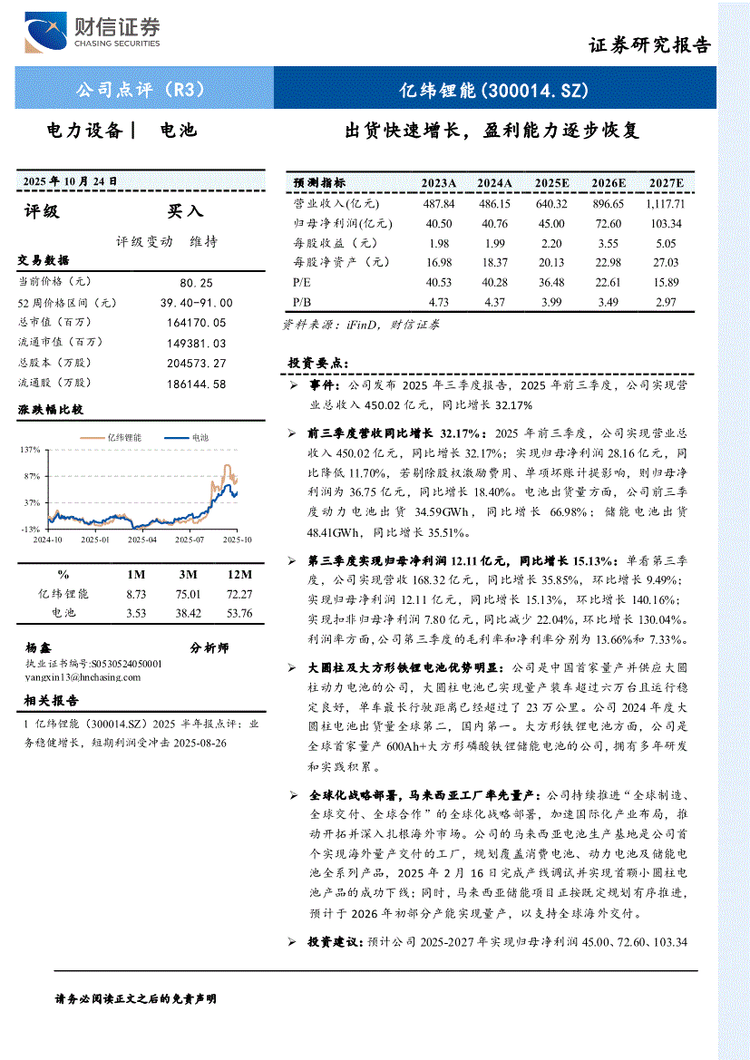 财信证券-亿纬锂能-300014-出货快速增长,盈利能力逐步恢复-251024