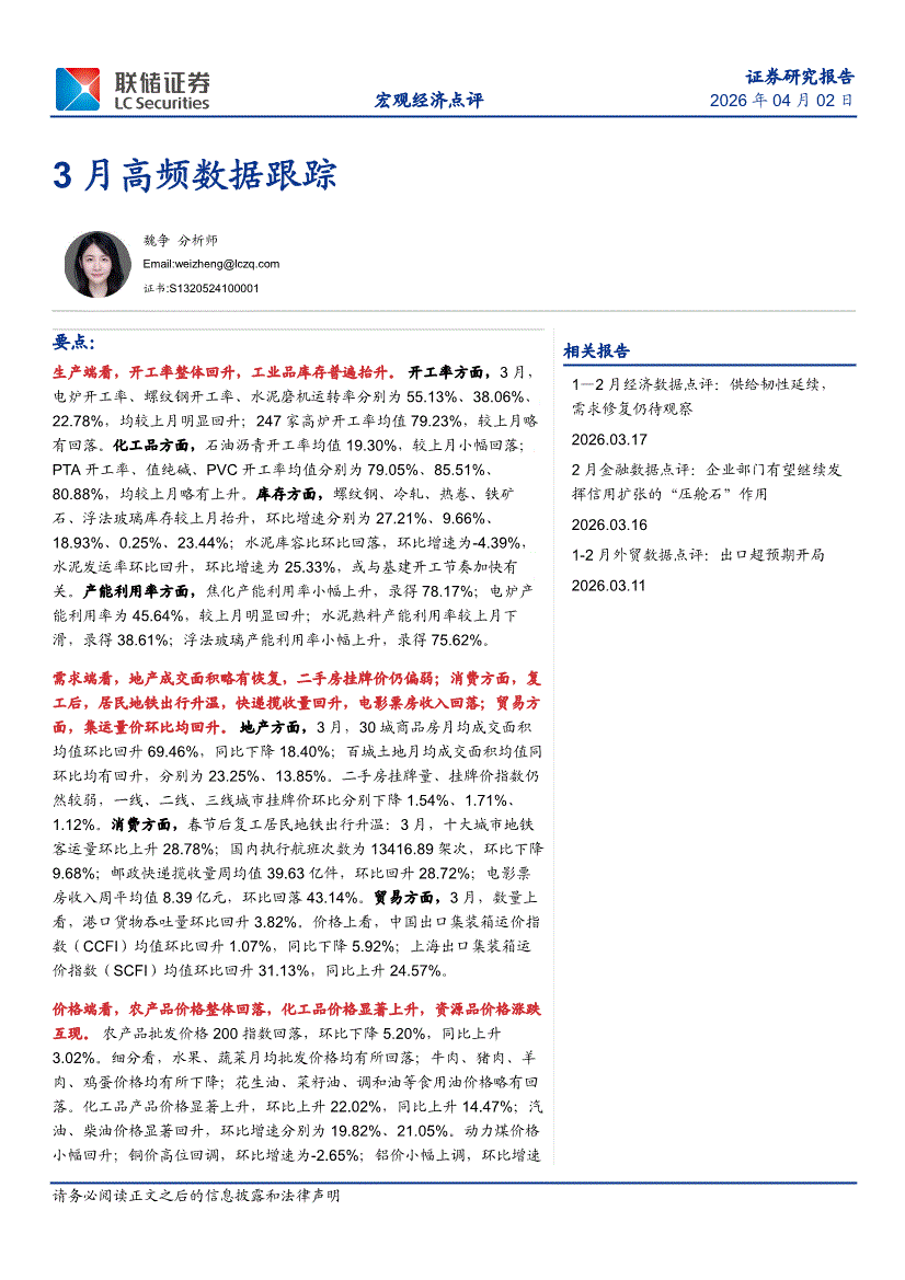 联储证券-3月高频数据跟踪-260402