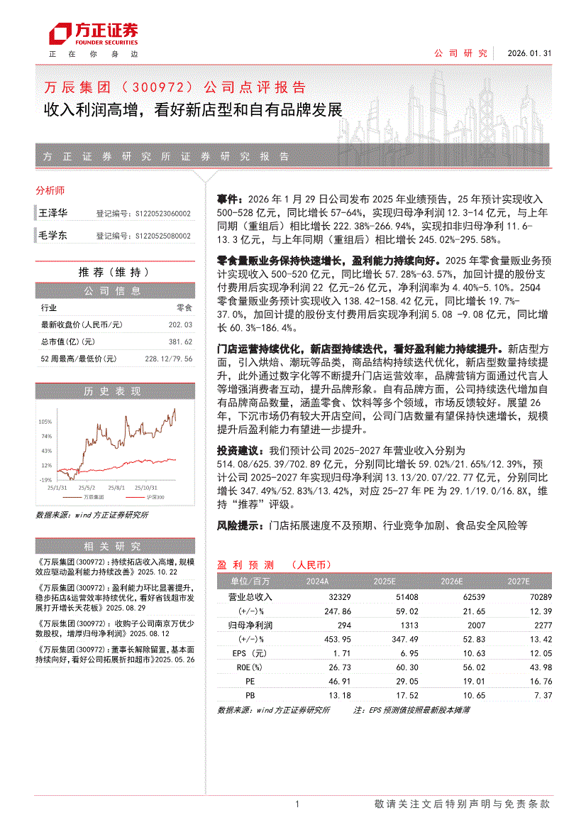 万辰集团:方正证券-万辰集团-300972-公司点评报告:收入利润高增,看好新店型和自有品牌发展-260131