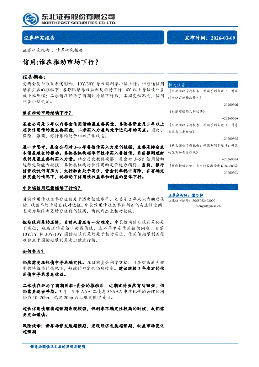 东北证券-信用:谁在推动市场下行?-260309