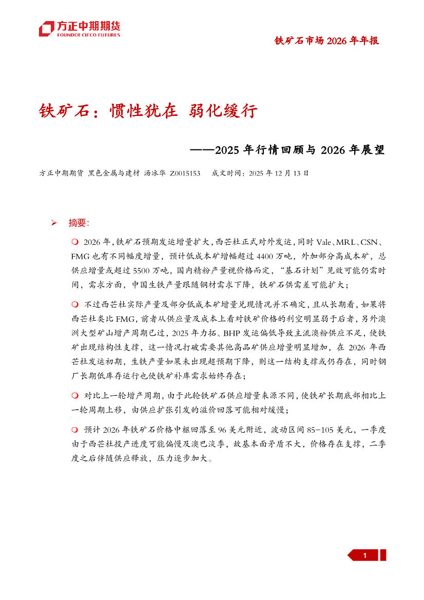 方正中期期货-2025年行情回顾与2026年展望:铁矿石,惯性犹在,弱化缓行-251213