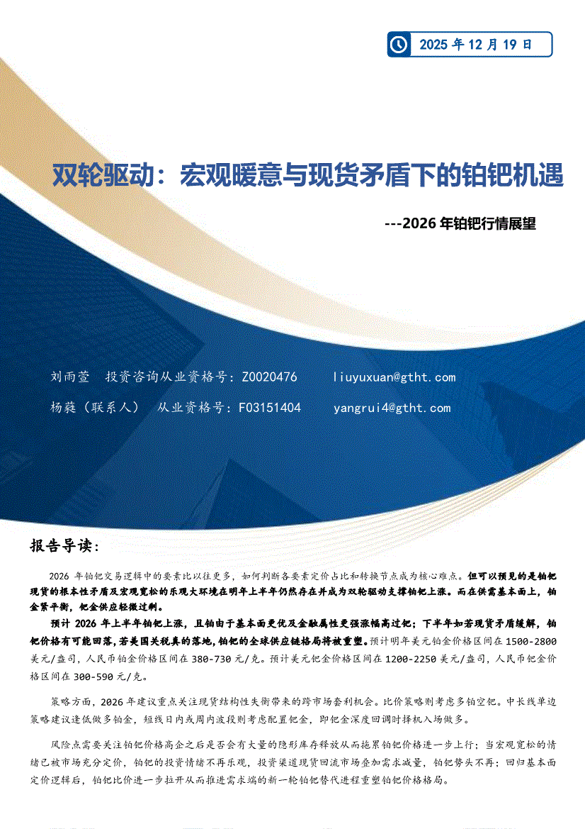 国泰君安期货-2026年铂钯行情展望:双轮驱动,宏观暖意与现货矛盾下的铂钯机遇-251219