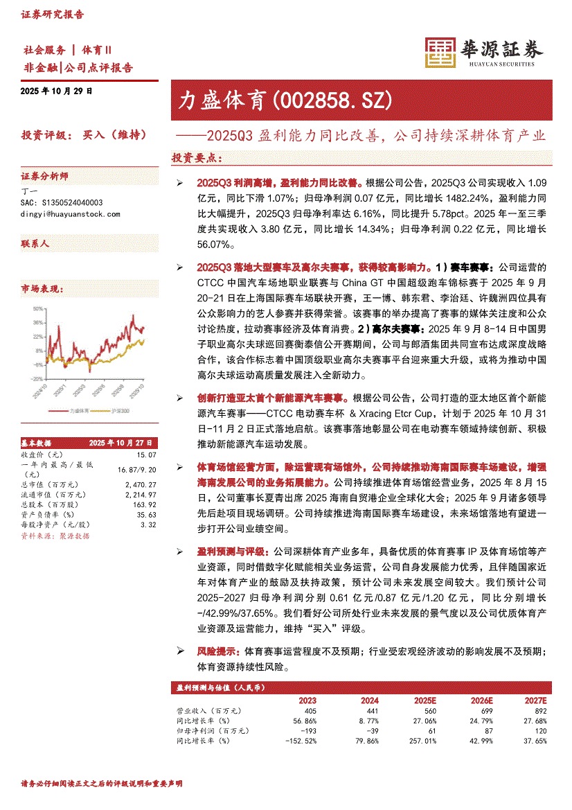 力盛体育:华源证券-力盛体育-002858-2025Q3盈利能力同比改善,公司持续深耕体育产业-251029