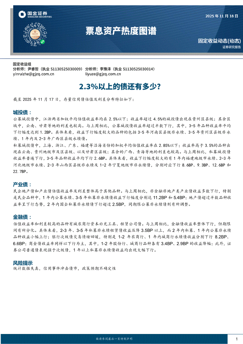 国金证券-票息资产热度图谱:2.3%以上的债还有多少?-251118