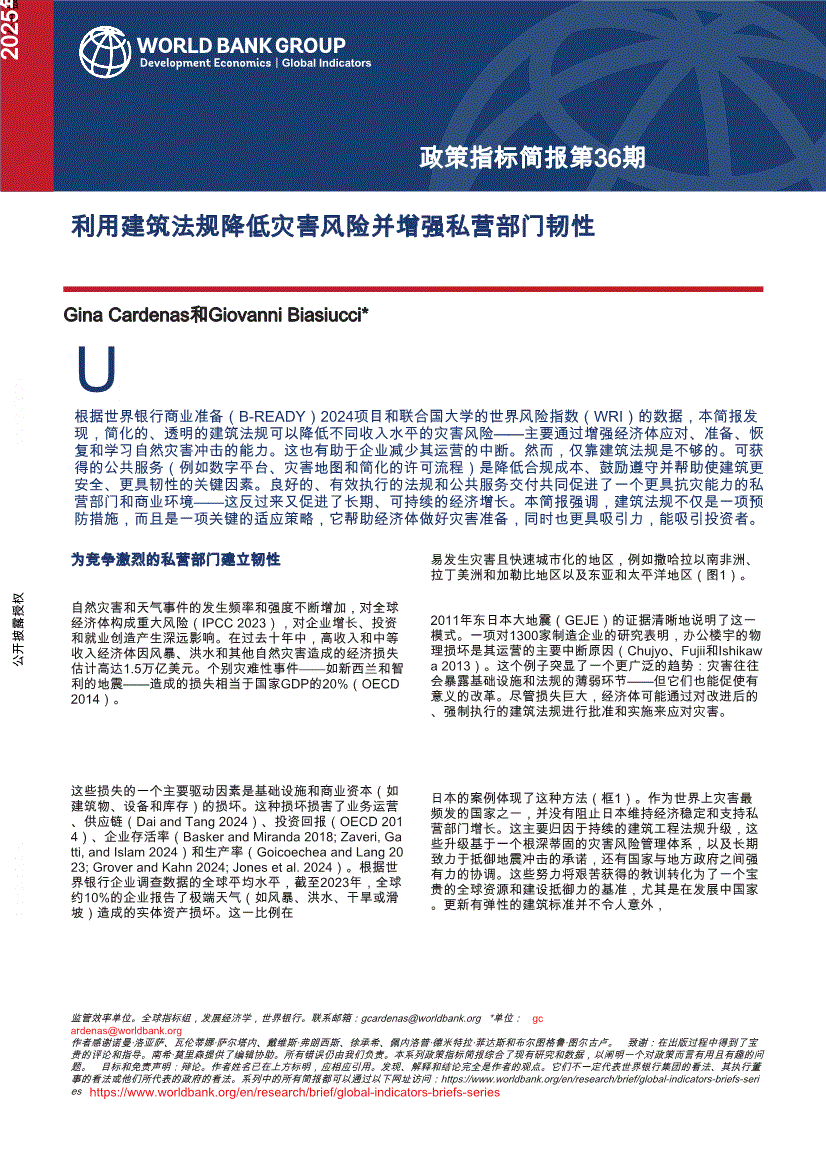 世界银行-政策指标简报第36期:利用建筑法规降低灾害风险并增强私营部门韧性(英译中)-251206