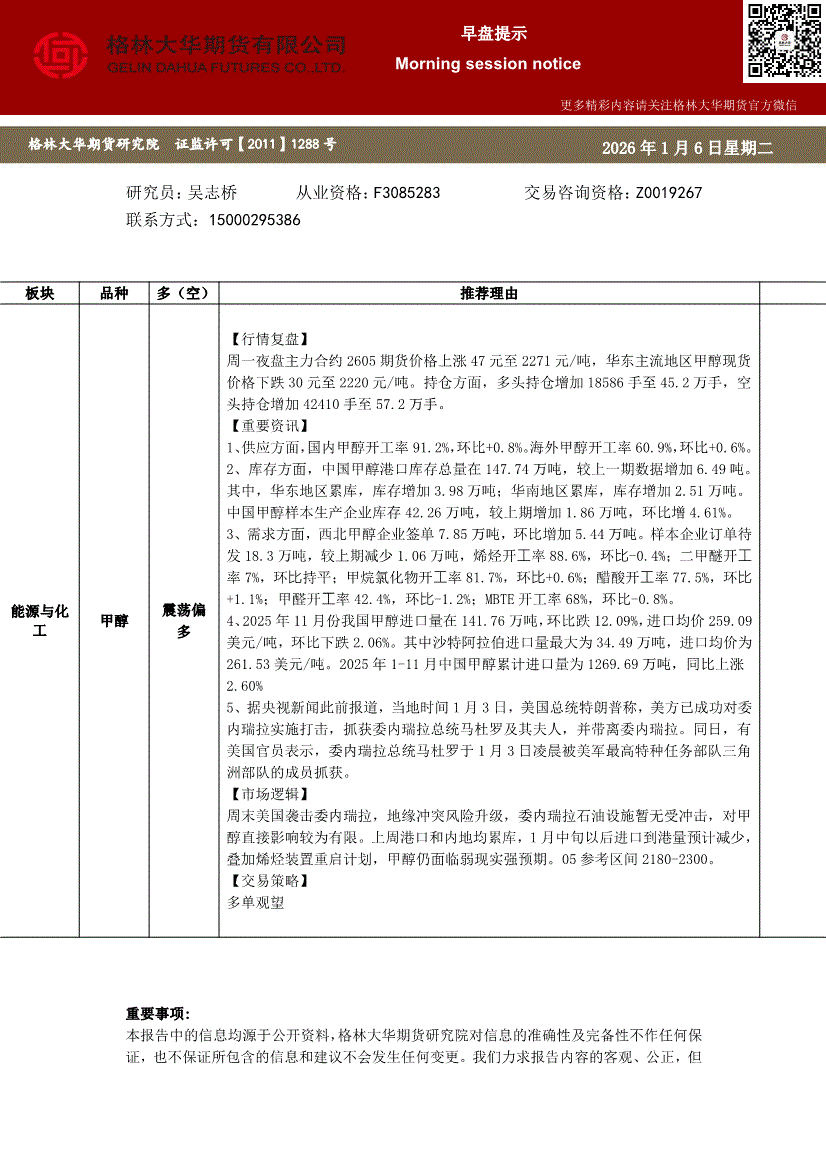 格林大华期货-市场快讯:美委爆发地缘冲突,瓶片纯苯预计跟随原料上涨-260104