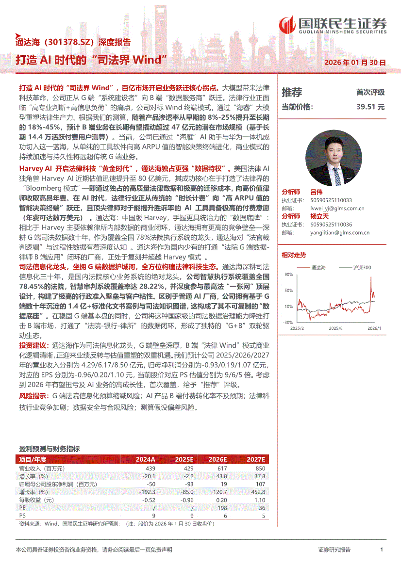 通达海:国联民生证券-通达海-301378-深度报告:打造AI时代的“司法界Wind”-260130