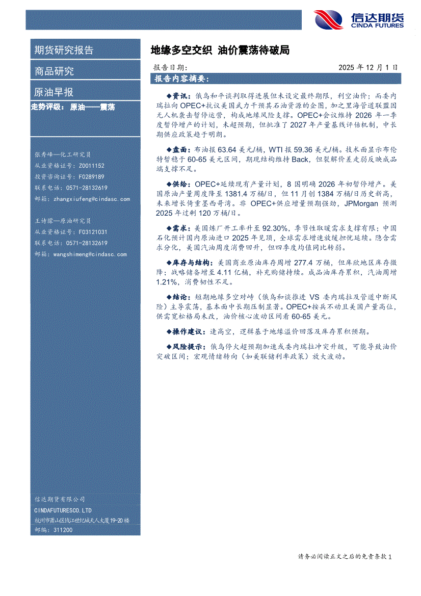 信达期货-原油早报-251201