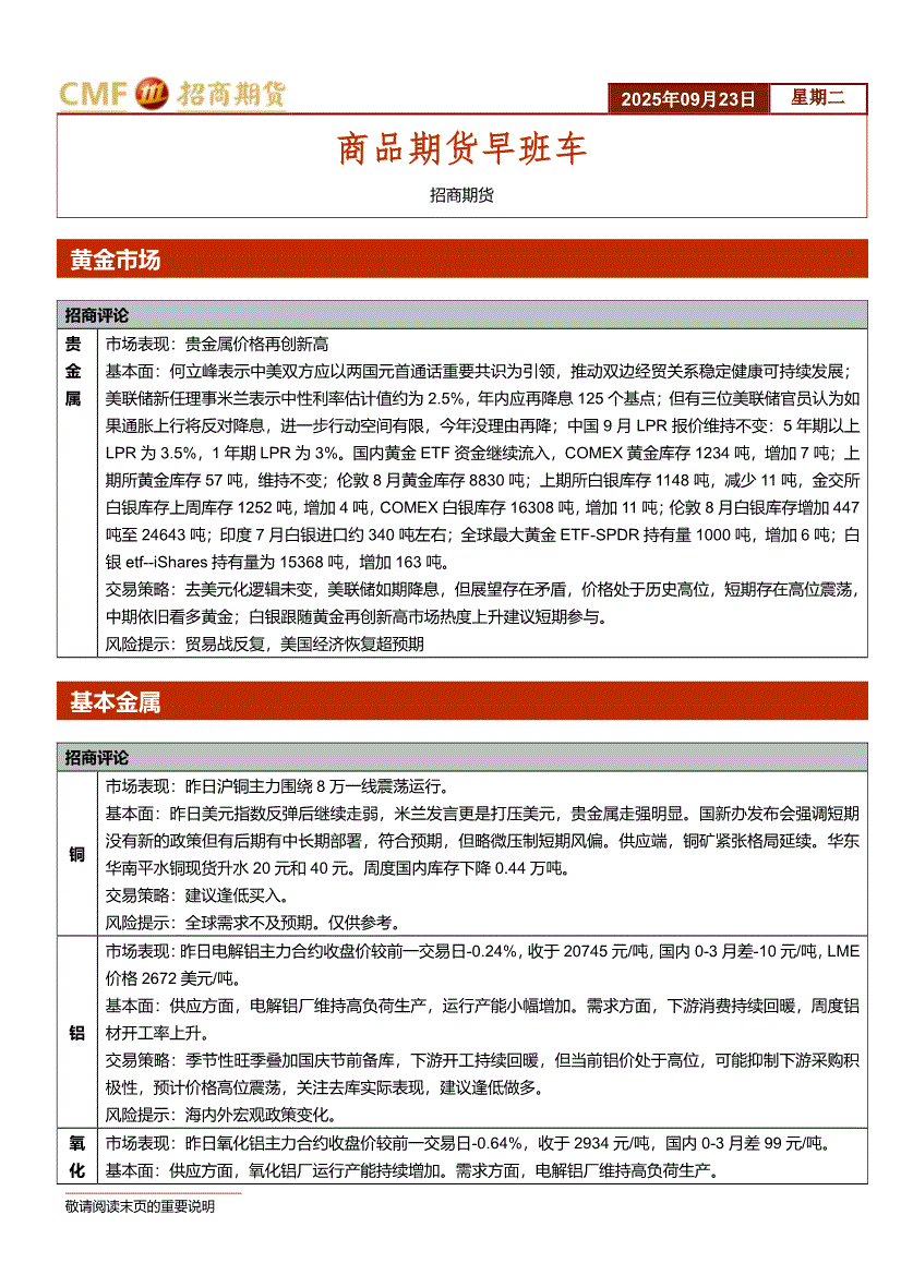 招商期货-商品期货早班车-250923