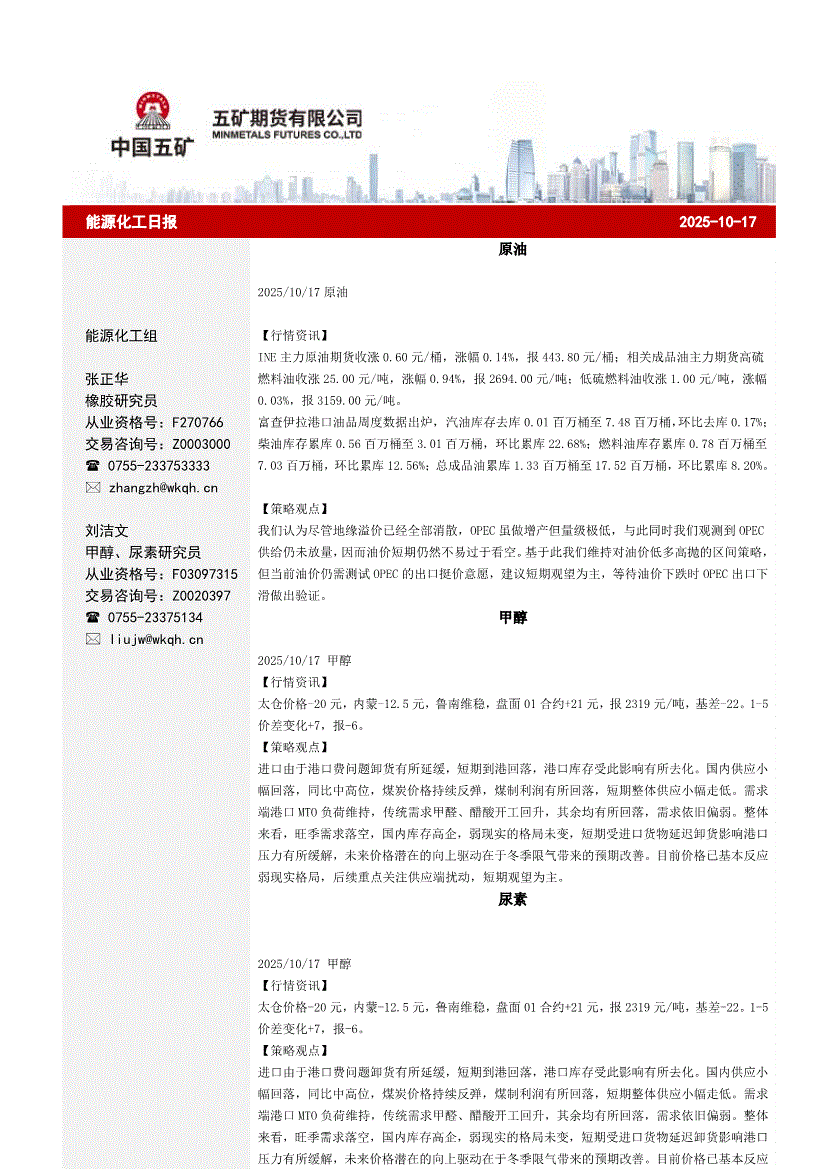 五矿期货-尿素周报:弱势未改,企业库存继续走高-251018