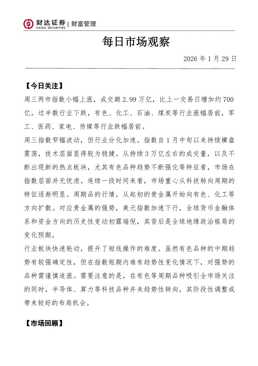 财达证券-每日市场观察-260129
