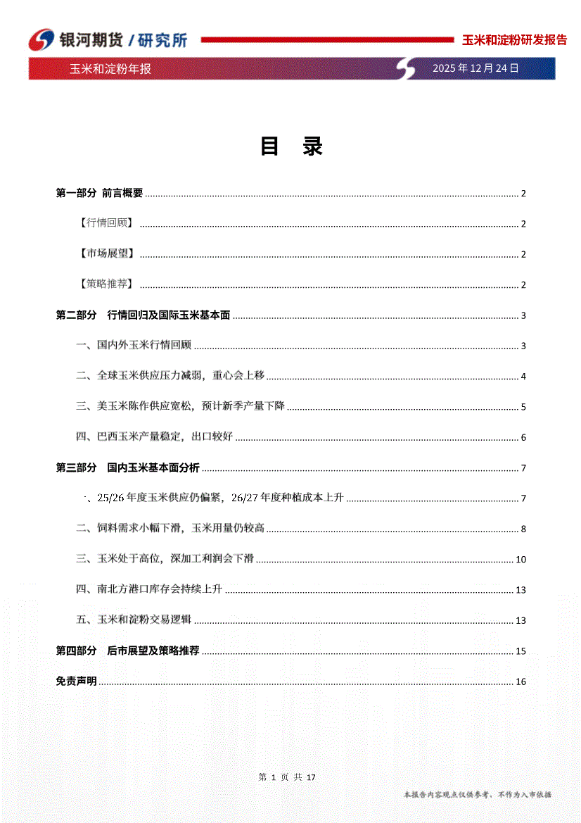 银河期货-玉米和淀粉年报:年后玉米供应仍偏紧,新季种植成本上升-251224