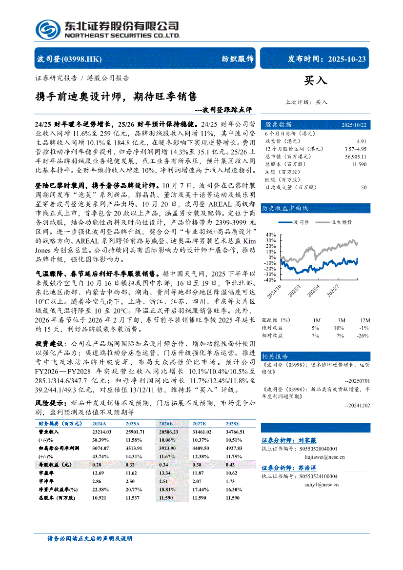 波司登:东北证券-波司登-3998.HK-跟踪点评:携手前迪奥设计师,期待旺季销售-251023