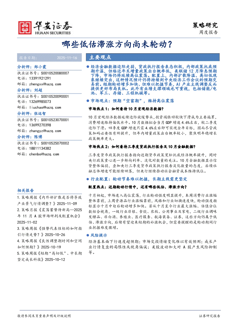 华安证券-策略研究周度报告:哪些低估滞涨方向尚未轮动?-251116