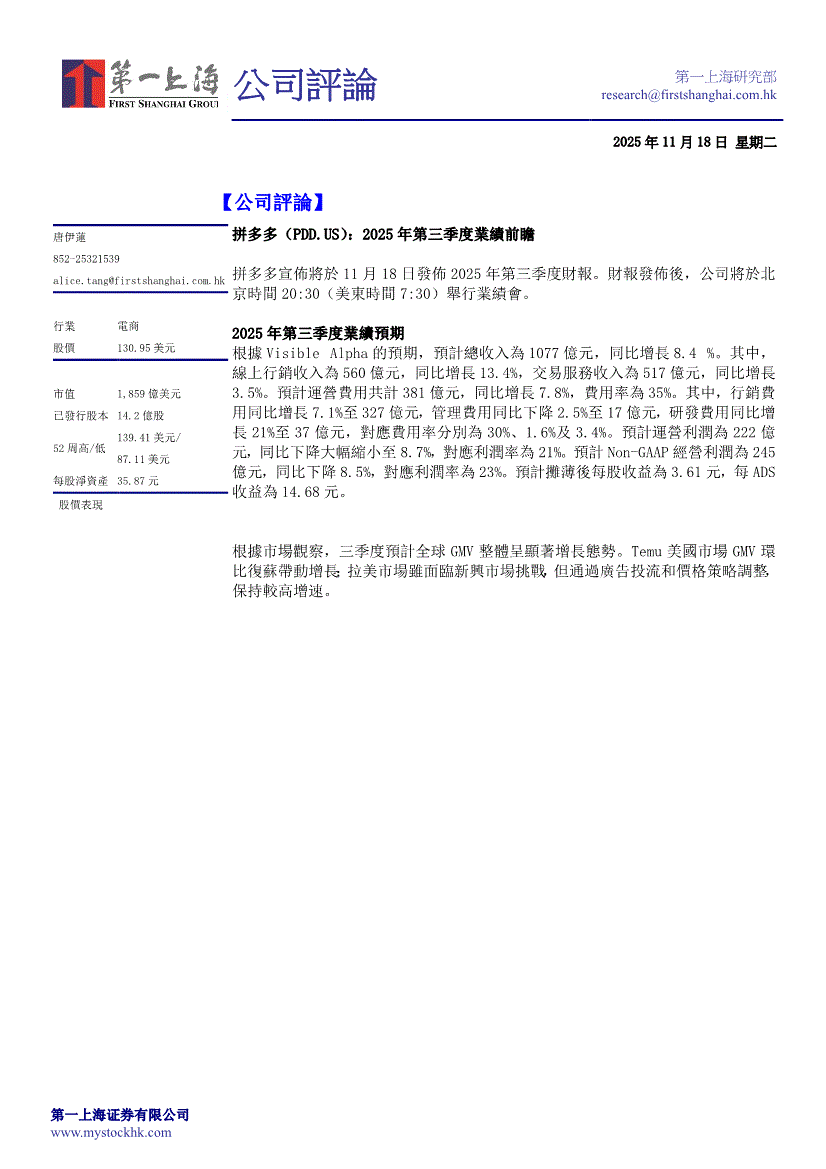 拼多多:第一上海-拼多多-PDD.US-2025年第三季度业绩前瞻-251118