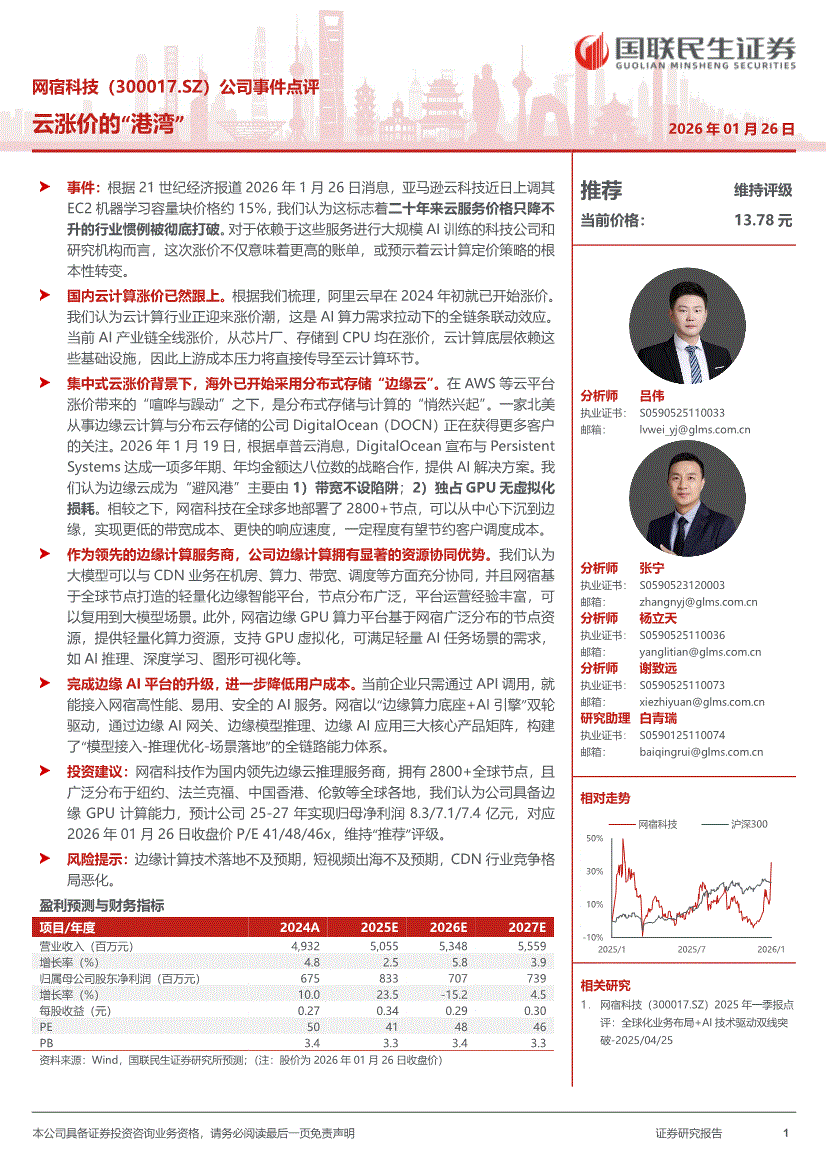 网宿科技:国联民生证券-网宿科技-300017-公司事件点评:云涨价的“港湾”-260126